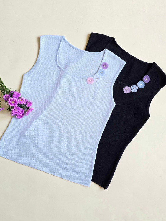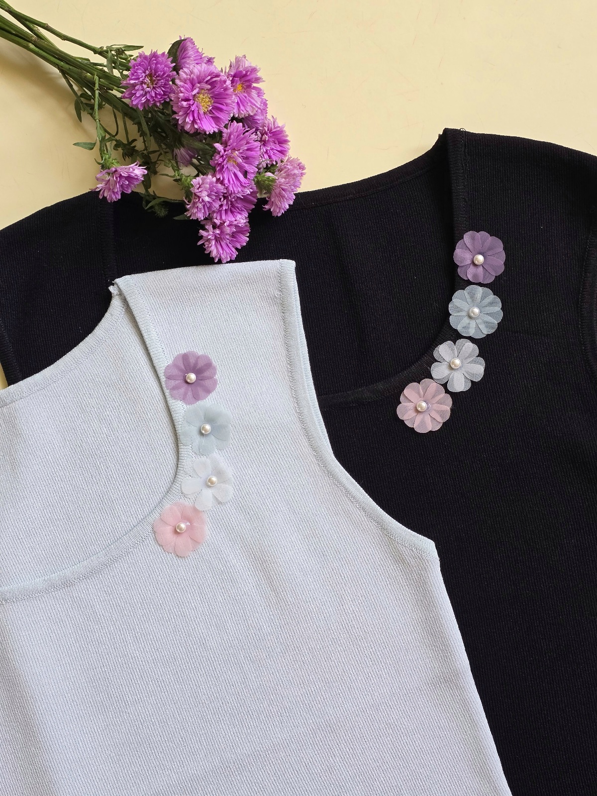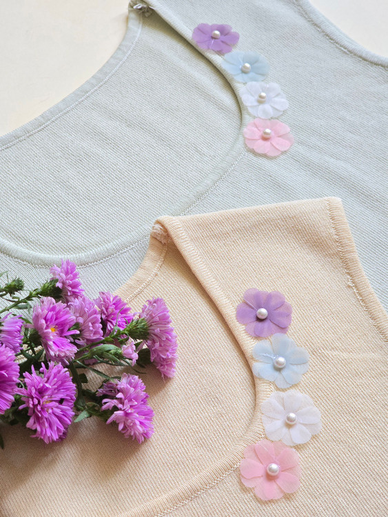 جزئیات: دور یقه شکوفه پارچه ای برجسته کار شده