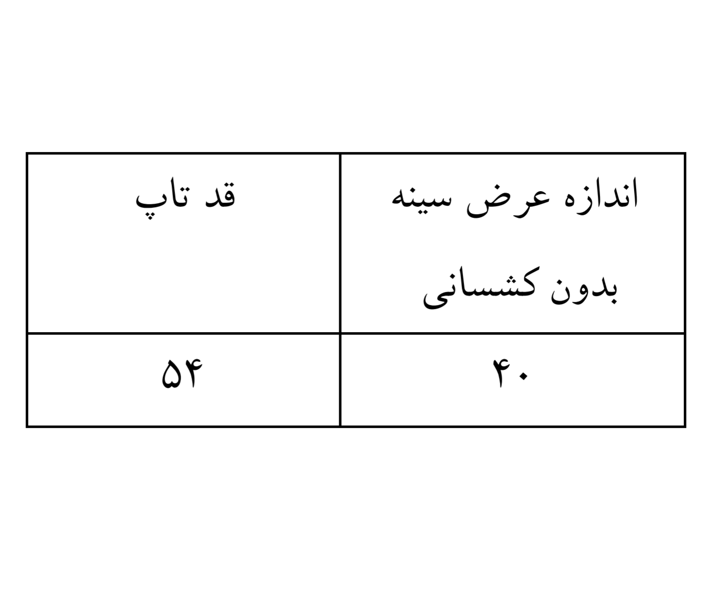 سایز: فیری سایز دارای کشسانی، مناسب ۳۶ الی ۴۶، عرض سینه در حالت عادی بدون کشسانی۴۰،قد تاپ ۵۴ سانت.