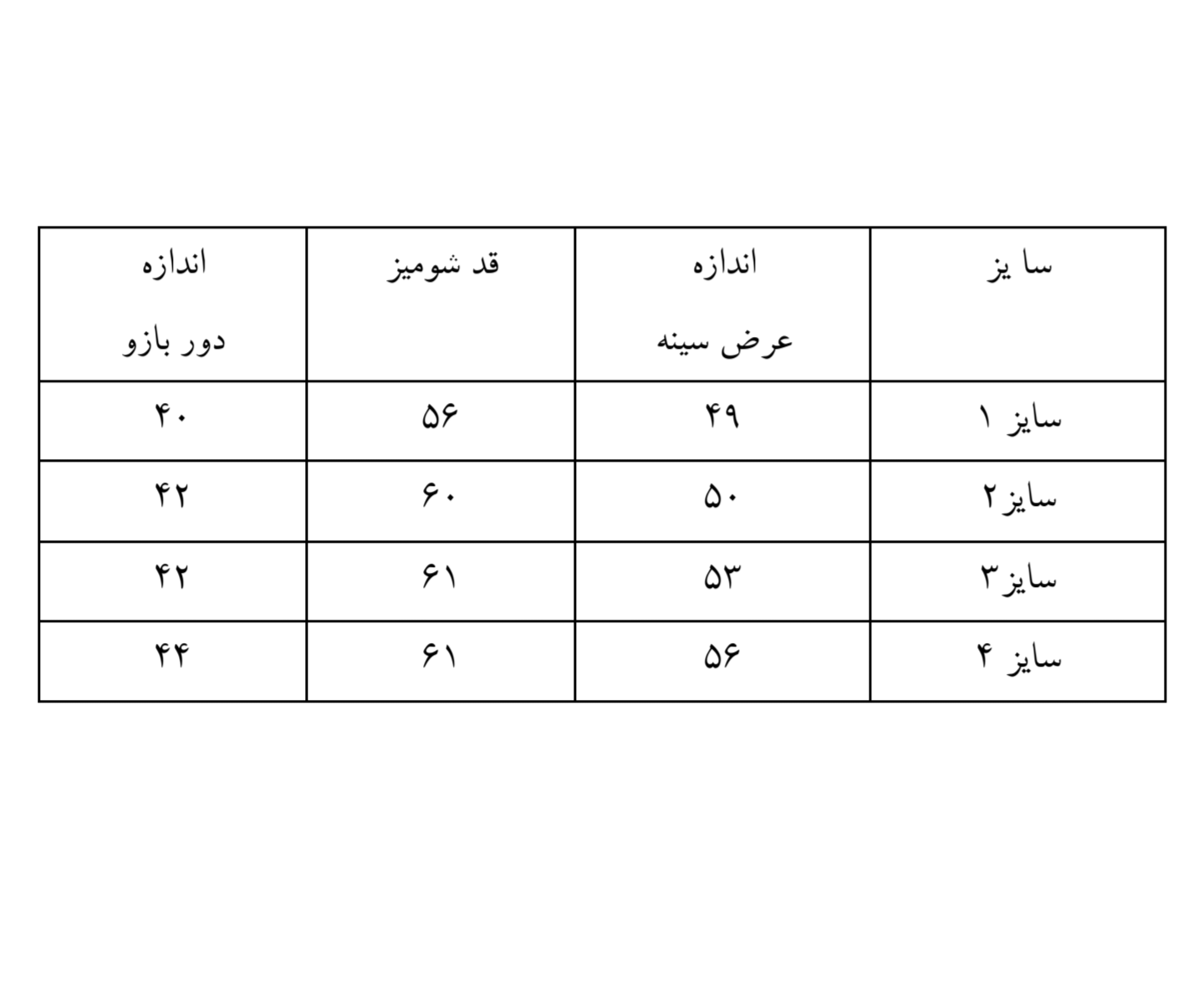 سایز۱ ، سایز ۲، سایز ۳، سایز ۴