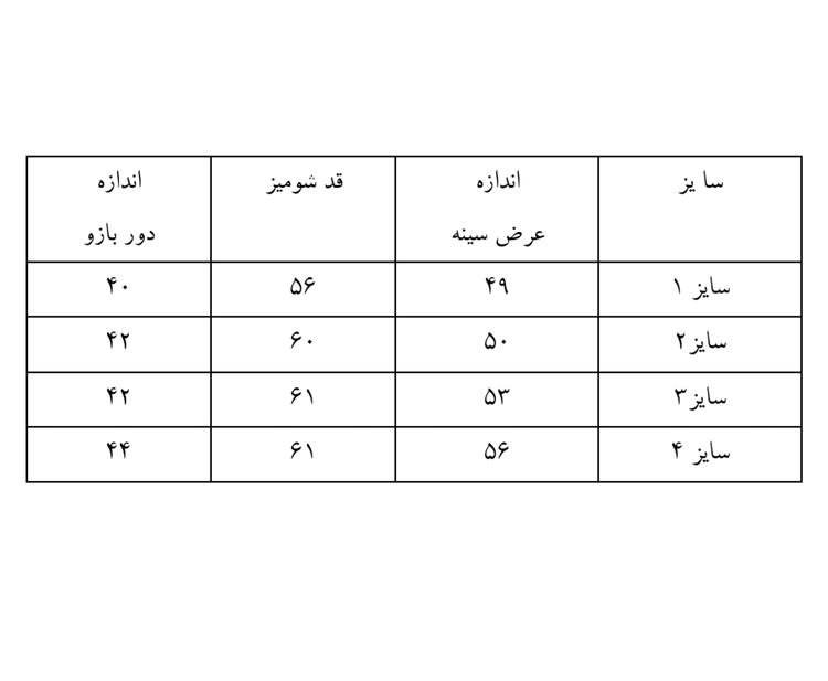 قبل از ثبت سفارش به اسلاید آخر جدول اندازه گیری مراجعه کنید