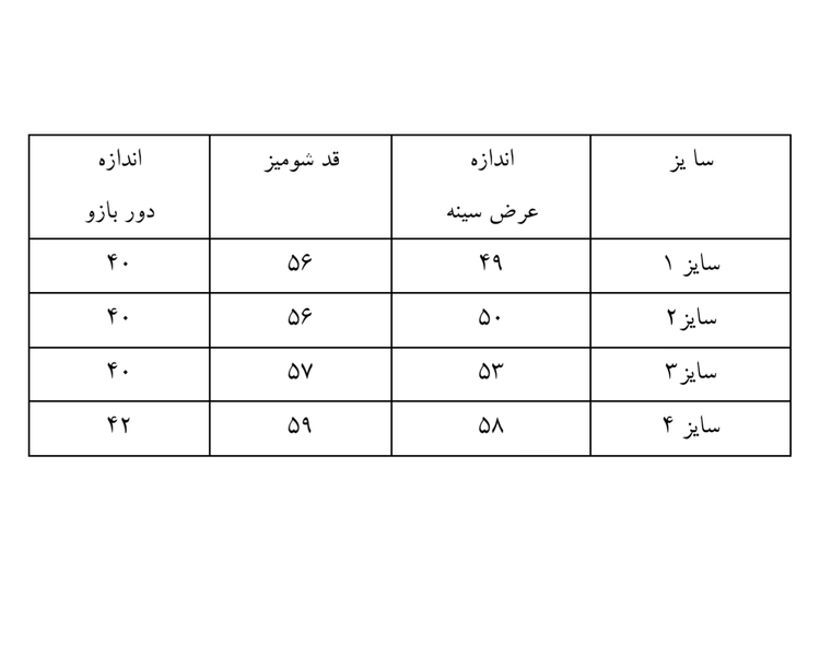 قبل از ثبت سفارش لطفا به اسلاید آخر، جدول اندازه گیری مراجعه کنید